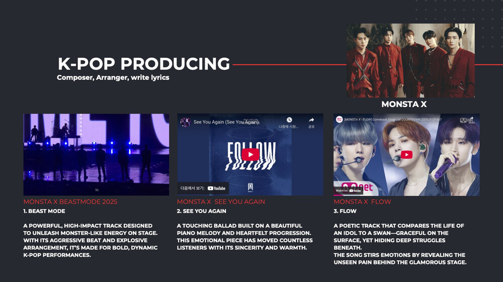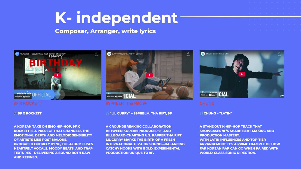 필요한 사운드를 알려주시면, 프로젝트에 맞춘 스템/비트/데모를 열어드립니다. 모든 트랙은 상업 사용 가능한 100% 오리지널이며, 즉시 활용할 수 있습니다. A&R 홀드, 싱크 브리프, 아티스트 데모에 맞춘 빠른 대응이 가능합니다. 투명한 계약·정산으로 매번 원활한 협업을 보장합니다.